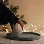 Χειροποίητος χριστουγεννιάτικος τσιμεντένιος δίσκος για την τοποθέτηση διακοσμητικών κεριών και άλλων χριστουγεννιάτικων δοχείων.