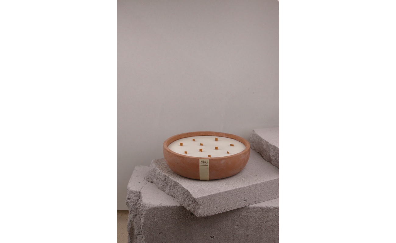 Κερί σε τσιμεντένιο κίτρινο δοχείο 320gr – Oku Creations